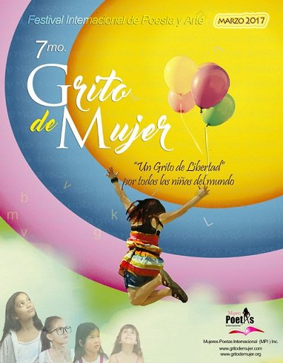Poster Grito de Mujer2017 peque1La Fundación Mujeres Poetas Internacional (MPI) Inc. en asociación con la marca Grito de Mujer® informan que alrededor de 30 países formarán parte del 7mo. Festival Internacional de Poesía y Arte Grito de Mujer 2017 bajo el lema: Un Grito de Libertad, en homenaje a todas las niñas del mundo, a celebrarse del 1ro al 31 de marzo 2017, con la participación de poetas, artistas e instituciones solidarias.