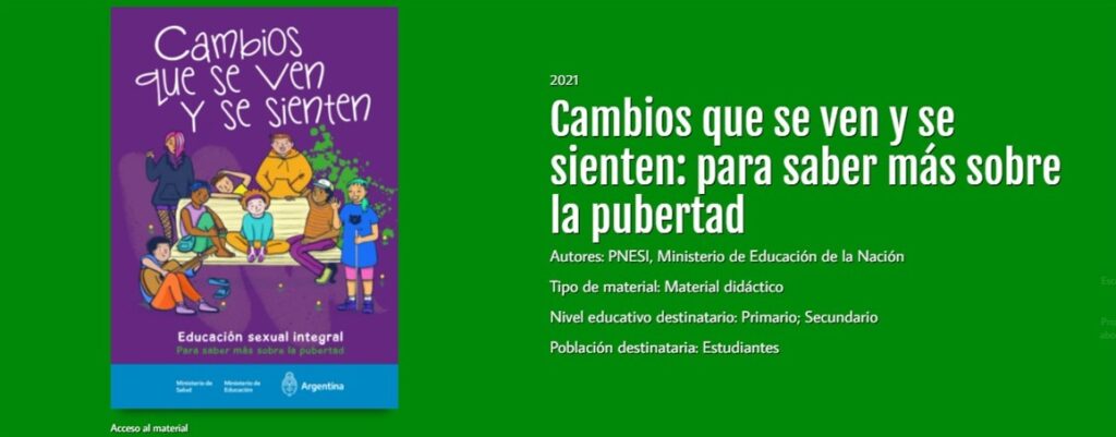 Haciendo un recorrido por Internet y redes sociales, la ESI circula por diferentes espacios. Páginas especializadas, plataformas educativas, agrupaciones políticas o fundaciones que brindan servicios. Pero también aparece de la mano de grupos de estudiantes referentes de distintas escuelas que buscan compartir y visibilizar experiencias; docentes militantes de la ESI que ofrecen cursos, servicios y capacitaciones a sus colegas; profesionales de la medicina y la sexología que se han vuelto influencers e instagramers, que habilitan discursos de temas sexuales con el objetivo de derribar tabúes y prejuicios, pero todas iniciativas que terminan siendo acciones individuales y no alcanzan para incluir los lineamientos curriculares específicos de toda una política educativa. Lineamientos que fueron desarrollados en una serie de materiales que están disponibles y al alcance de cada docente en la página del PNESI y a los cuales se puede acceder desde la web.