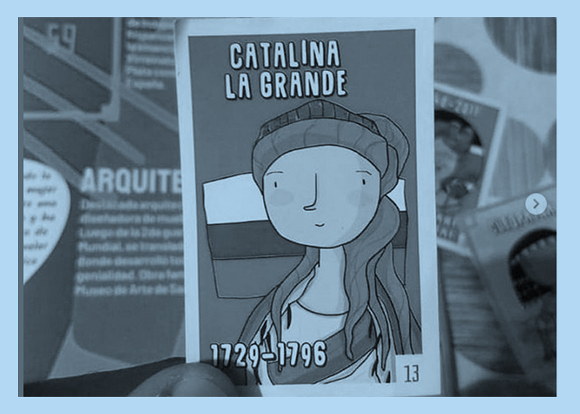 Heroínas de la historia es un álbum de figuritas diseñado para chicas y chicos que llega para hacer justicia con el pasado y romper con los manuales tradicionales de historia, donde las mujeres quedan relegadas y los hombres que acaparan todo el prestigio de los logros humanos. “Debido al contexto histórico que estamos viviendo en donde las mujeres y disidencias están en la constante lucha para conquistar derechos y que los que ya tenemos se respeten consideramos que este álbum iba a contribuir, ayudar y aportar a esa lucha”, cuenta a Cosecha Roja Casandra Bonilla, codirectora de Sintonía Demos.