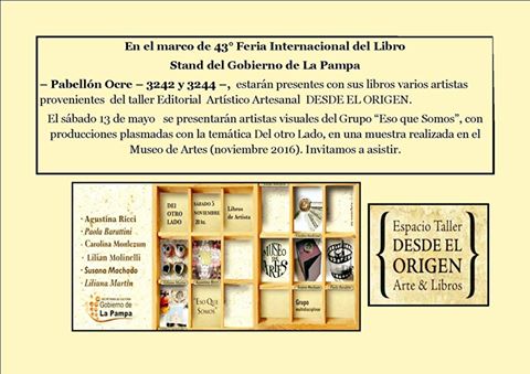 La muestra consiste en la presentación de libros de artista, organizado y construidos desde el taller editorial artesanal “Desde el Origen” que dirige Susana Machado.