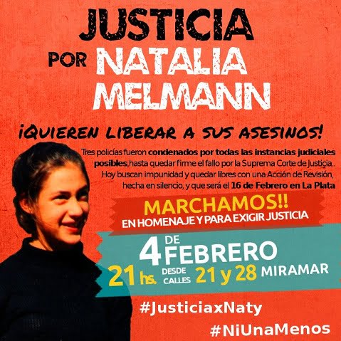 Por Natalia Melmann convocan a una conferencia de Prensa y Acto Homenaje el próximo 4 de febrero a las 17 y 21 horas en Miramar