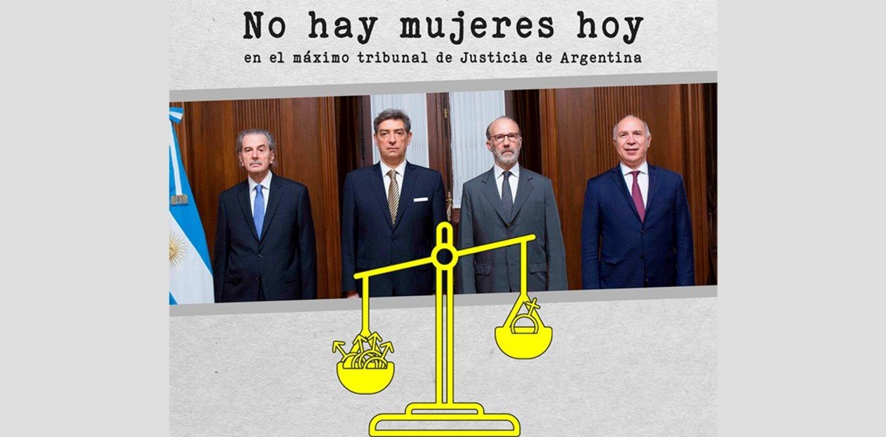 Recién en 2004 una mujer entró por primera vez a la Corte Suprema de Justicia de la Nación. Fue Elena Highton de Nolasco, quien el mes pasado presentó su renuncia. En 2005 asumió la segunda mujer, Carmen Argibay. Reconocida feminista, en 2009 creó la Oficina de la Mujer de la Corte Suprema, única en el mundo, para capacitar en temas de género. Argibay murió en 2014. Ya no hay mujeres en el Máximo Tribunal, sólo cuatro varones.